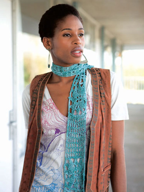 Crocheted in a decidedly summer friendly yarn, Aroma is more than a scarf, it is textile jewelry.