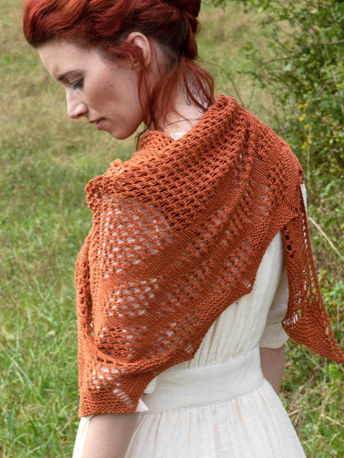 A breezy triangular shawl knitting pattern, Cabriele is worked from the top down in an allover lace stitch that flows effortlessly into the bottom edging.