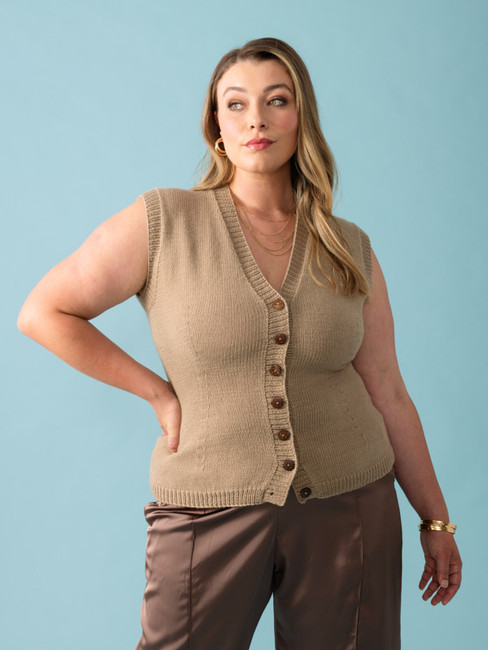 Smart, sophisticated style is a snap with the fitted Calla vest. Fully fashioned waist shaping highlights or creates curves, adding a modern twist to this timeless V-neck vest. Worked in one piece from the bottom up, you can add optional patch pockets and choose from Cashmello's expansive color palette to make it your own.