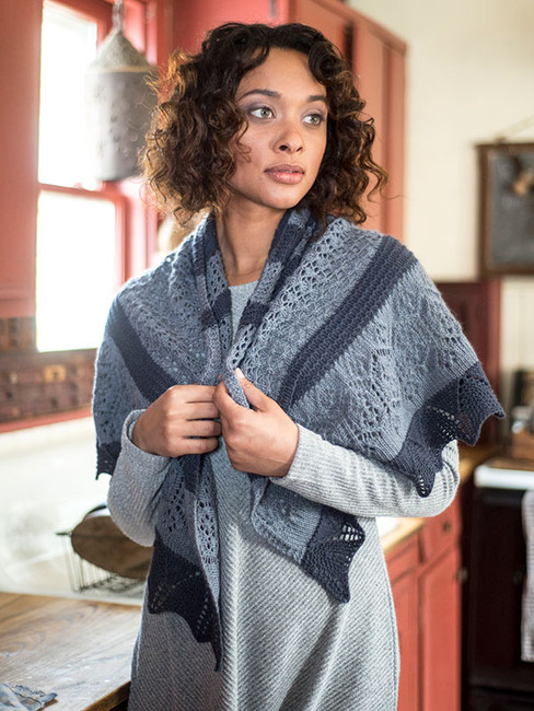 Knit from the center out in a semi-circle, this shawl knitting pattern calls for two colors of Berroco Quechua and a variety of classic stitch patterns.