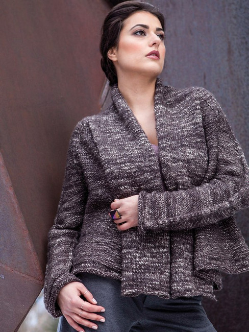 This dramatically flared top-down cardigan plays up the textural differences between stockinette and its reverse.