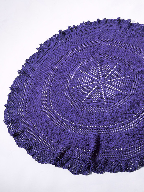 This crocheted baby blanket has instant classic style with its beautiful combination of simple stitches, lace inset rounds, and soft Vintage Baby yarn. Janae is worked from the center out in the rounds and finishes with a sweet ruffle flourish.