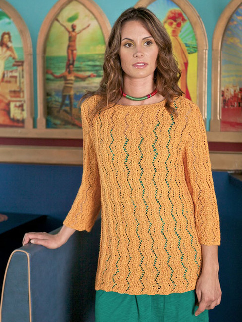 Lively columns of eyelets zigzag down the length of a tunic with threequarter length sleeves.