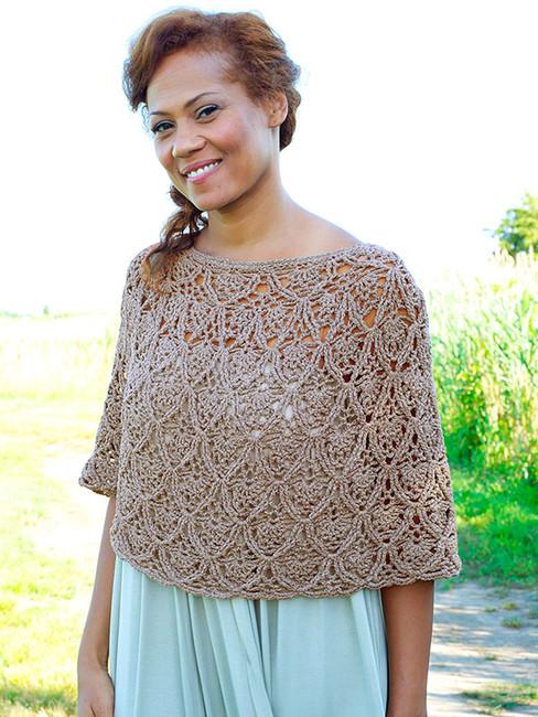 Lisbon is a beautiful lace poncho crocheted in the round from the top down.