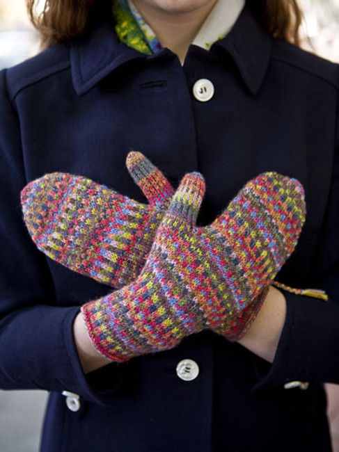 Wear a tiny prism when you don this pair of colorwork mittens. Knit using just two shades of Berroco Sox Metallic, the kaleidoscopic effect is stunning.