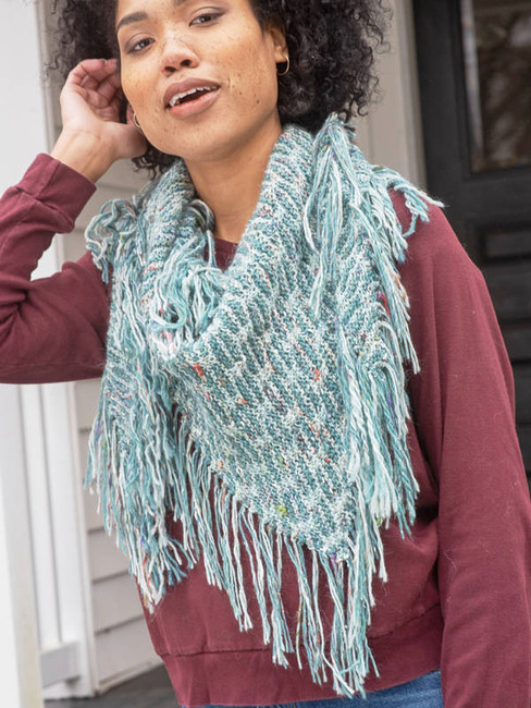Olivet is an ode to fringe! We love its boho vibe which makes wearing it feel effortless. The shawl is worked side to side in a garter slipped stitch pattern and is self-fringing.