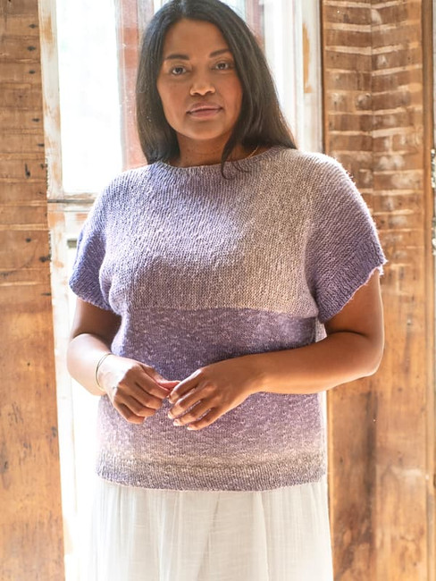 Ovaline is a classic fit knit tee. The yoke is worked sideways and the body is picked up and worked down.