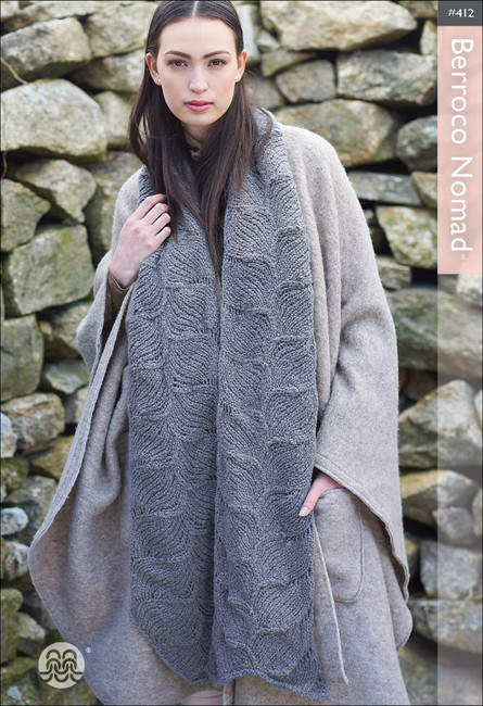 Ten knitting patterns, ranging from hat and mittens sets to sweaters and bold scarves, show off the beautiful texture of Berroco Nomad.