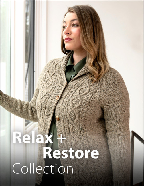 The cozy projects in the Relax + Restore Collection are just the things to snuggle into as the weather turns cool. From socks and accessories to sweaters and blankets, you will have no trouble finding projects to add to your must-knit list!