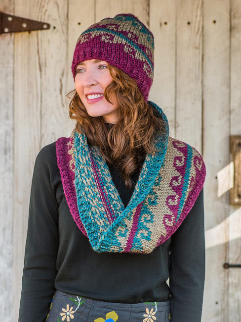 Make waves with this fun hat and cowl set. Using three colors of Lanas Quick, it’s a great beginner colorwork project.