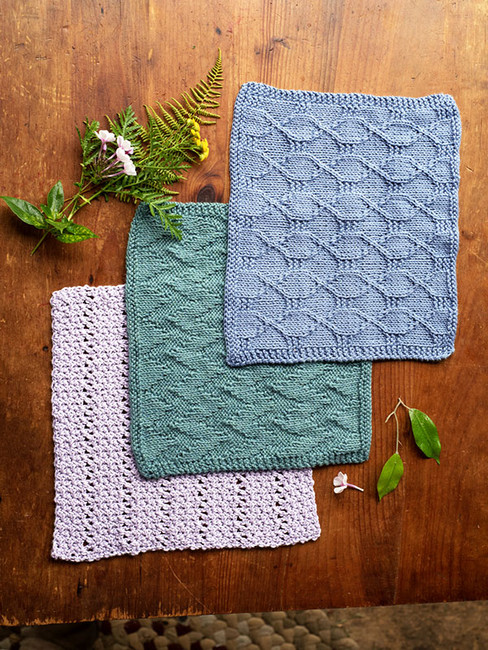 A trio of dishcloth patterns, made with Berroco Pima 100, in both knit and crochet make a lovely gift set.