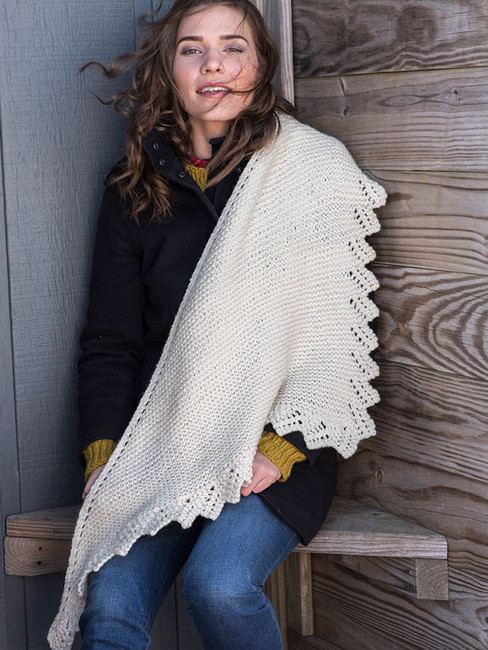 This large triangular shawl is worked end-to-end in garter stitch, with a knitted on edging. Only three balls of Berroco Catena are required to make this cozy wrap.